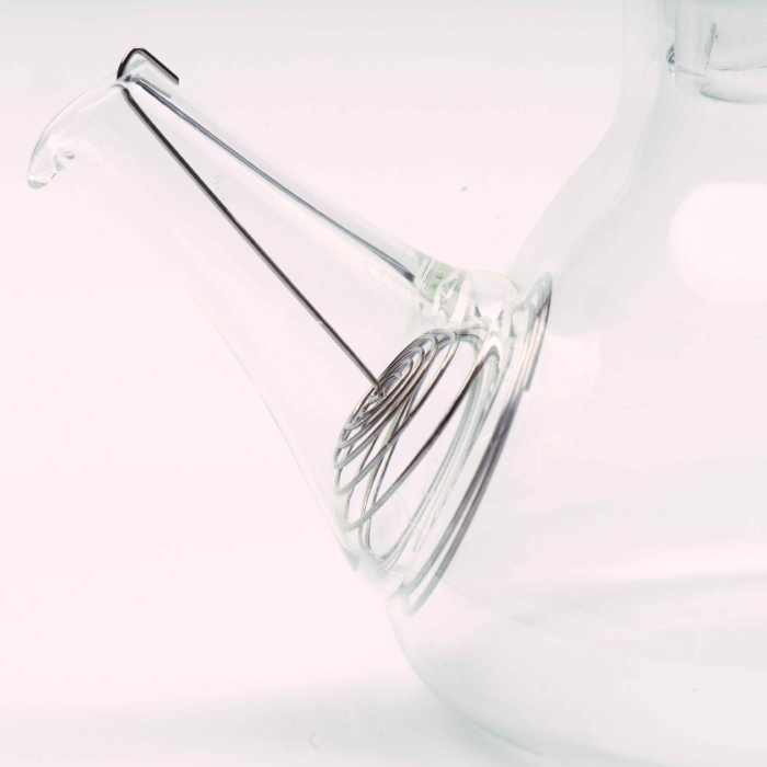 The clear glass body allows you to observe the unfurling of tea leaves and the gradual deepening of colour with each infusion. Perfect for intentional gongfu style tea brewing. A built-in stainless steel coil strainer ensures a clean, smooth pour while preserving the integrity of loose-leaf teas.